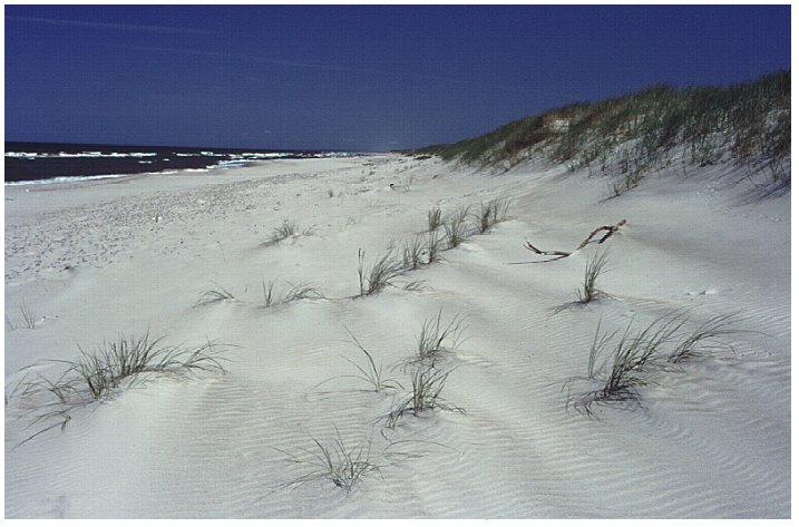 Mit einem litauischen Linienflug erreichte ich im Juni Polangen (Palanga). In Litauen liegt übrigens im Dorfe Bertonai (25 Kilometer nördlich von Vilnius) der geometrische Mittelpunkt Europas. Nach dem Übersetzen mit der Fähre in Memel (Klaipeda) auf die Süderspitze der Nehrung und einer Autofahrt von etwa zweistündiger Gesamtdauer erreichte ich Nidden (Nidda). Dieser Ort, nahe der russischen Grenze der Nehrung, gilt als einer der schönsten Orte Litauens. Seit 1976 ist der litauische Teil der Nehrung ein Naturschutzpark. Der Naturschutzgrenzposten liegt kurz vor Schwarzort (Juodkrante). Auch der anschließende russische Teil ist ein Naturschutzgebiet. Der Frühsommer mit angenehmen Temperaturen bietet sich als Reisezeit besonders an. Thomas Mann, der auf Nidden ein Sommerhaus besaß, welches heute zu besichtigen ist, sagte einmal, daß es sich mit dem dortigen Wetter verhielte, wie mit einer launischen Frau. Heute ist der Großteil der Kurischen Nehrung wieder mit Vegetation bedeckt. In Schwarzort wurde bis 1899 durch Ausbaggern des Haffufers Bernstein gewonnen (Bernsteinhafen von Schwarzort). Nicht weit von hier befindet sich eine Kormorankolonie. Ostseestrand und Haffufer