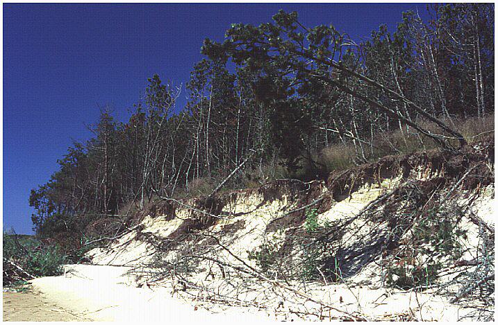 Sand ist hier durch eingesickerte Huminsäuren stellenweise verfestigt. Die