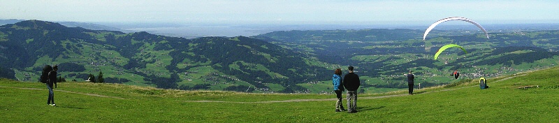 Nach einem Bericht im DHV-Info 216, einer TV-Sendung im ORF und viel Hörensagen anderer Flieger, war es für mich dann auch mal Zeit die Niedere zu besuchen, den Hausberg von Andelsbuch (Fluggebiets-GPS-Daten). Viele Infos über die wichtigsten Fluggebiete gibt es auf der HP des Geländehalters Flugschule Bregenzerwald und deren Shop, direkt beim GS-Landeplatz bei der Talstation in Andelsbuch. Jeder Flieger muss sich jährlich, mit einem an der Sesselliftkasse ausliegenden Formular, dort neu fürs Fluggebiet registrieren. Der Luftraum ist in einem bestimmten Bereich, direkt über der Talstation, für Acroflieger reserviert (Acrobox). An einem Wochenende bin ich nicht geflogen |