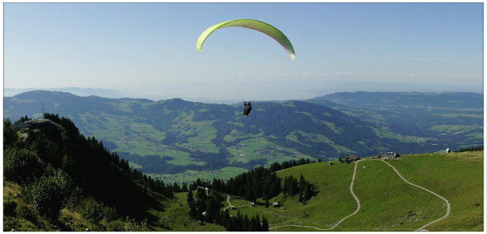 Gleitschirm nach Start vom Startplatz "Hintere Niedere" (Flug-Richtung nördlich)