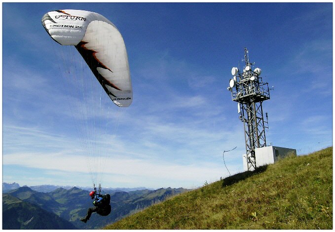 Gleitschirmstart am Diedamskopf (Süd-Startplatz) beim Funkturm