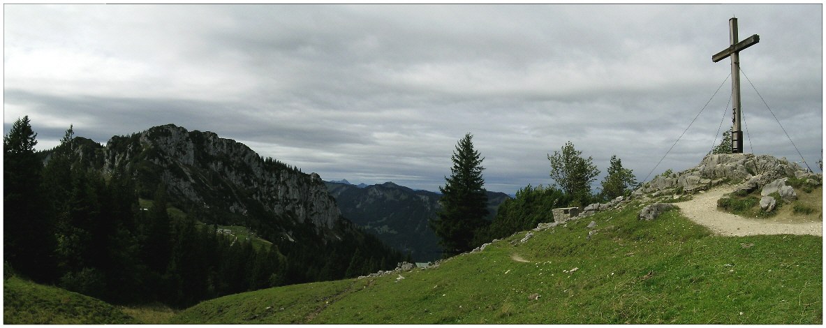 Kampenwand-Panoramaweg - Blick auf Scheibenwand und Andachtskreuz