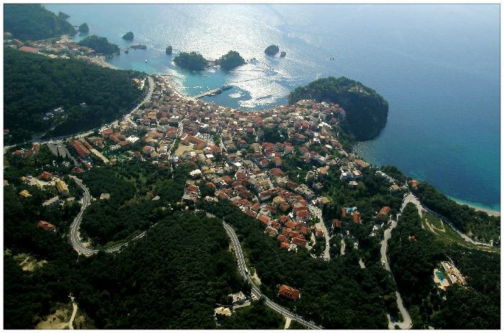 Parga (... mit kleinerem Kriomeri-Beach links oben)