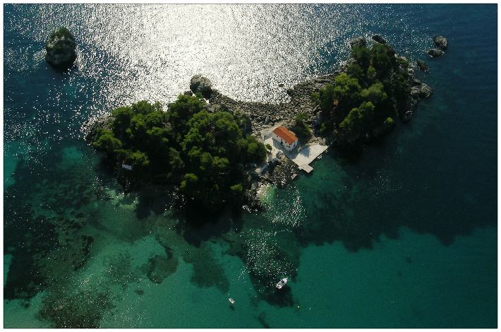Kleine Insel vor Parga aus der Luftperspektive
