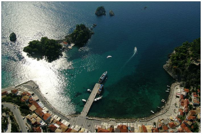 Boots-Pier bei Parga aus der Vogelperspektive