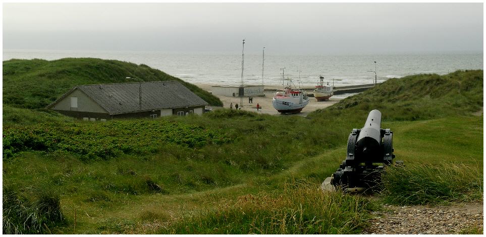 Blick vom Signalpaltz auf den Fischereihafen und Mole in der Jammerbucht