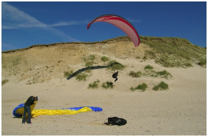 Vor dem Fliegen muß immer der Sand aus dem Schirm entfernt werden