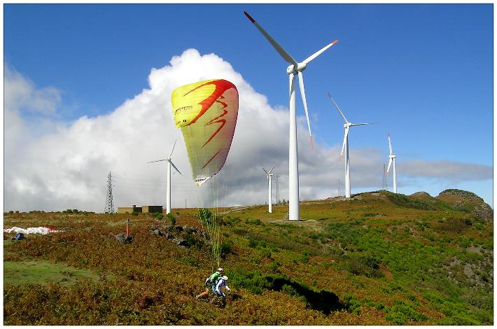 Tandemstart von Hartmut Peters am Startplatz Bica da Cana Parque Eole