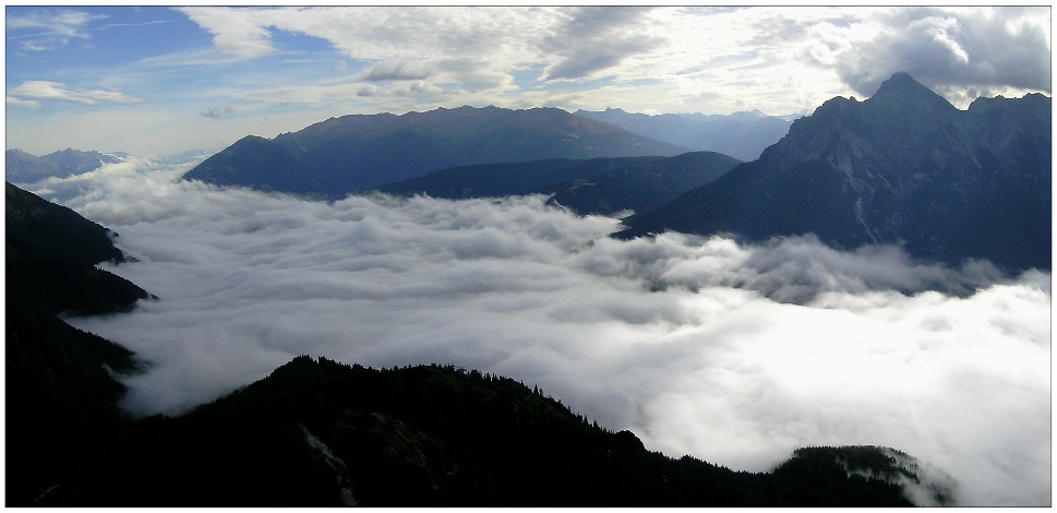 Blick von Aussichtsplattform "Stubaiblick" nach Nordosten auf morgentliche Inversionsschicht
