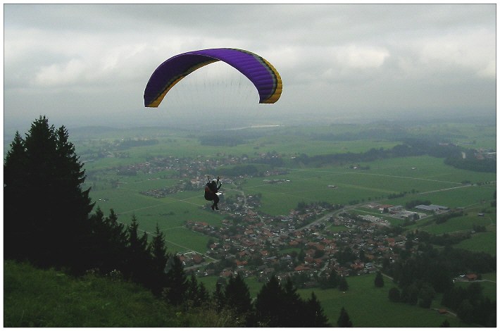 Blick auf Buching und Gleitschirmstart (NO) am Buchenberg