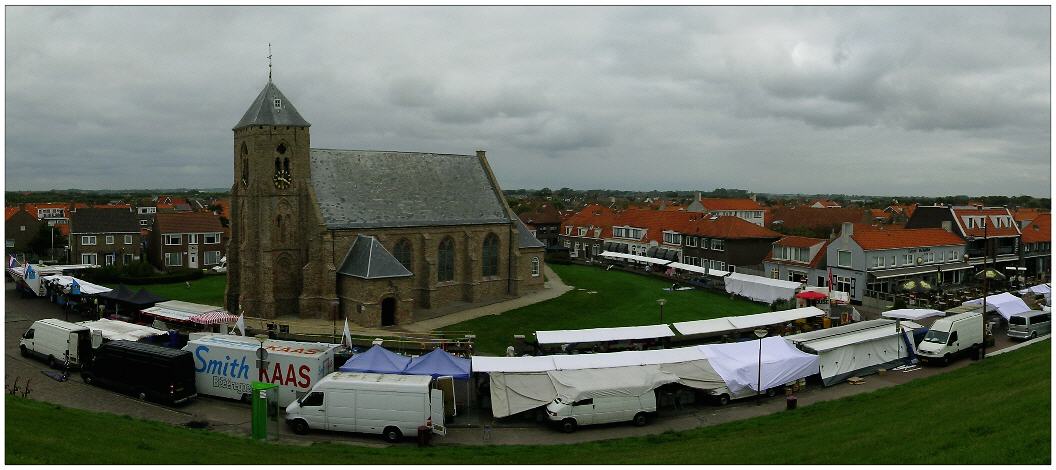 Catharina-Kirche in Zoutelande an einem Markt-Dienstag