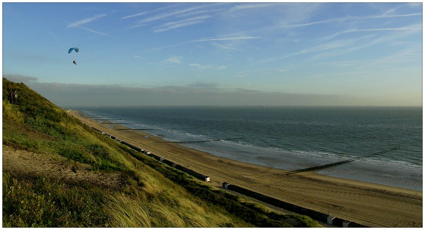 Dünen-Startplatz mit fliegendem Miniwing in Zoutelande