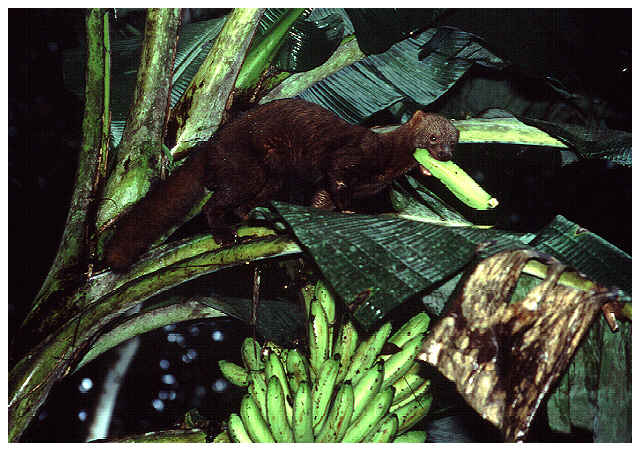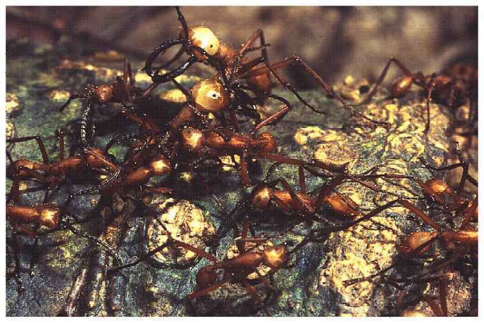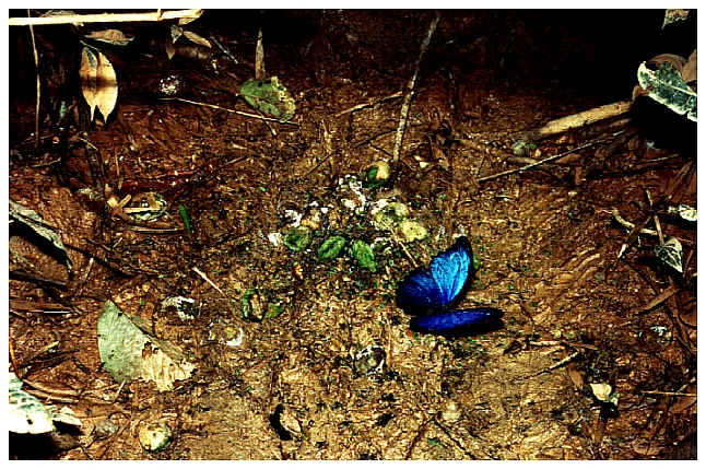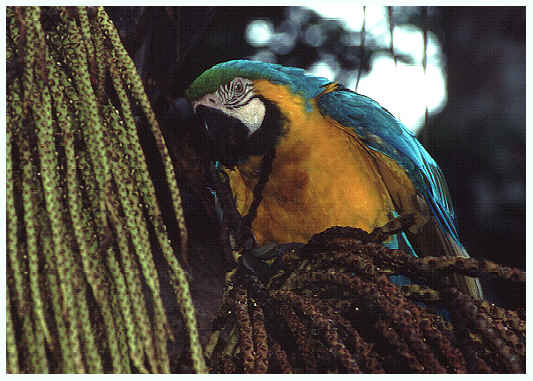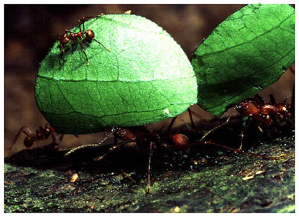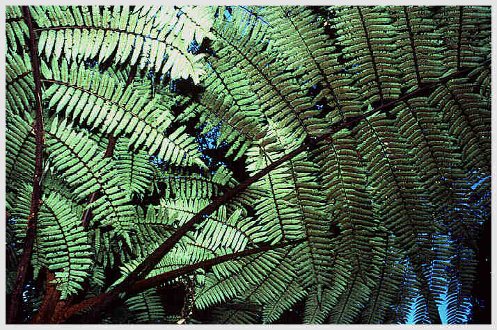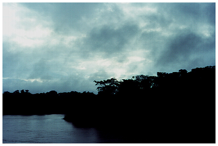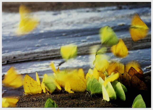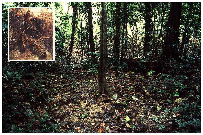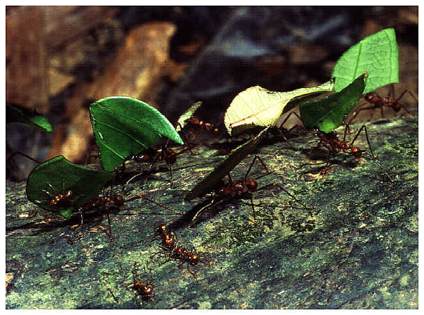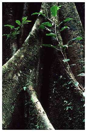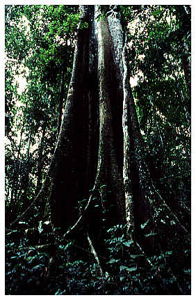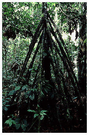 | Aus den unermeßlichen Weiten des Weltraums zeigt sich die Erde als blauer Planet. Über 65 Prozent der Erdoberfläche ist von Wasser bedeckt. Doch Blau ist die "Wüstenfarbe des Meeres", die Farbe der tropischen Ozeane mit verhältnismäßig wenig Pflanzenmasse. Eher grün erscheinen hingegen die kalten Meere, wie im Bereich der Polarregionen. Winzige im Plankton enthaltene Algen verursachen diese Grünfärbung. Auf den Landmassen hebt sich vom Ocker der Wüsten und vom Braun der Savannen ein dunkles Grün ab, der äquatoriale Gürtel aus Tropischem Regenwald. In den meist immergrünen Baumkronen des Regenwaldes, wie in den grünen Meeresalgen, ruft das in den Chloroplasten enthaltene Chlorophyll die Grünfärbung hervor. Die Chloroplasten sind die Kraftwerke der Pflanzen. In ihnen werden mit Hilfe des energiereichen Sonnenlichtes jeweils 6 Moleküle Kohlendioxid und Wasser zu einem Zuckermolekül und 6 Molekülen Sauerstoff umgesetzt. Der gebildete Sauerstoff wird als Nebenprodukt dieser Photosynthese von den Pflanzen an die Atmosphäre abgegeben. Dieses Grün ist das Ergebnis einer Jahrmillionen dauernden Entwicklung und hier schließt sich der "Farbkreis" des Lebens, dessen Entstehung sich hauptsächlich im Blau des Wassers vollzog und das ohne Wasser nicht möglich ist. Diese Kombination aus Blau und Grün verleiht der Erde ihre einzigartige Stellung innerhalb unseres Sonnensystems. Vor 30 Jahren bedeckte das Grün des tropischen Regenwaldes etwa 12 Prozent der Landfläche. Heute sind es gerade noch 5 Prozent und hält die Vernichtung im gleichen Maße an, ist der Regenwald in weiteren 30 bis 50 Jahren nahezu vollständig verschwunden. Vom Beginn bis zum Ende dieses Satzes sind schätzungsweise erneut 2 Hektar Regenwald unwiederbringlich verloren. Mindestens 1800 Millimeter Niederschlag pro Jahr, keine längeren Trockenzeiten und gleichmäßige, nicht zu kalte Temperaturen sind die Grundvoraussetzungen für die "Grüne Hölle", die zugleich ein grünes Paradies ist. Feuchte Schwüle ist das Lebenselixier des tropischen Regenwaldes. Die Luftfeuchtigkeit überschreitet häufig den Taupunkt, liegt also über 100 Prozent. Die Bezeichnung "Regenwald" umfaßt eigentlich eine Vielzahl von verschiedenen Regenwaldtypen. Die Spanne reicht vom kühleren Bergregenwald, dessen Flora aus unserer Sicht aus zu groß geratenem Kleinen zu groß geratenem Kleinen und zu klein geratenem Großen erscheint, bis zum periodisch laubabwerfenden Saisonregenwald. In Letzterem reicht die Niederschlagsmenge im Jahresverlauf nicht immer aus, denn nur solange die Regenmenge die Verdunstungsrate übersteigt, kann sich der Regenwald dauerhaft halten. Die Artenzahlen der Regenwälder übertreffen die der Mischwälder der gemäßigten Breiten um ein Vielfaches. In Zentralamazonien wurden auf einem einzigen Hektar über 500 verschiedene Arten von Holzgewächsen gezählt. Allein die Gesamtzahl der Vogelarten der verschiedenen Regenwälder liegt bei über einem Drittel des Weltartenbestandes. Betrachtet man die Insekten, so ist die weltweite Artenzahl nirgendwo höher, als in den tropischen Regenwäldern. Neuere Untersuchungen der Insektenwelt im Kronenbereich der Regenwälder ließen den bisher geschätzten Tierartengesamtbestand der Erde von etwa 3 Millionen auf über 20 Millionen hochschnellen. Im Vergleich zu anderen Lebensräumen erreicht die Anzahl der verschiedenen Arten (Artendiversität) im tropischen Regenwald einen Höchstwert. Die Individuenzahl pro Art und Flächeneinheit ist jedoch meist gering, was in der Regel für Flora und Fauna gleichermaßen gilt. Größere Ansammlungen einer Tierart sind im Regenwald eher die Ausnahme. Artenreichtum und Seltenheit der verschiedenen Arten gehen Hand in Hand. Untersuchungen im malaysischen Regenwald zeigten, daß die größte Artendiversität an Holzgewächsen bei einem geringen Phosphor- und Kaliumgehaltes des Bodens zu finden war. Die Artenzahl sank bei zunehmend besserer, genau wie bei extrem schlechter Nährstoffversorgung jedoch ab. Langjährige Experimente zeigten, daß mit der Zufuhr von Pflanzennährstoffen (Düngung) die Artendiversität zu Gunsten von wenigen Arten, mit allerdings hohen Bestandsdichten stark abnimmt. In Sachen Regenwald müssen die beiden Begriffe Artenreichtum und Artenhäufigkeit deutlich voneinander getrennt werden. Die hohe Artendiversität in den tropischen Regenwäldern ist das Ergebnis eines Mangels an Nährstoffen und nicht eines aufgrund der Vielfalt der Arten scheinbaren Überschusses. Der Regenwald ist grünes Paradies und grüne Hölle zugleich. Die vorhandenen Nährstoffe im komplexen Ökosystem Regenwald sind nicht frei verfügbar, sondern ständig im Umlauf. Ein Tropenökologe meinte einmal die Nährstoffknappheit eines Biotopes zeige sich darin, wie lange es dauere bis ein tierisches Exkrement verschwunden sei. Im Regenwald dauert dies häufig nur ein paar Stunden. Kleine Dungkäfer und andere hierauf spezialisierte Insekten warten nur auf ihren geheimen Einsatzbefehl. Aufgrund des Fehlens einer ausgedehnte Humusschicht, wie in europäischen Wäldern, verfügen viele Tropenbäume über ein nicht besonders tiefreichendes Wurzelwerk. Um dennoch eine gewisse Standfestigkeit zu erreichen, bilden sich an der Stammbasis oft weit ausladende Brettwurzeln aus. Beim Kampf um einen Platz an der Sonne entwickelten manche Palmenarten Stelzwurzeln, um über einen stabilen Stand zu verfügen. Oft erreicht nur 1 Prozent der Lichtmenge des Kronenbereiches den Waldboden. Die Baumwurzeln gehen eine enge Symbiose mit bestimmten mikroskopisch kleinen Pilzen ein. Fallaub und andere organische Stoffe werden sehr schnell durch die Pilzfäden zersetzt. Die Pilze liefern dem Baum die raren Mineralsalze und werden im Gegenzug mit dem bei der Photosynthese gebildeten Zucker entlohnt. Diese Wurzel-Pilzkombination gleicht einem gigantischen Hochleistungsfilter. Wasser welches ihn durchwandert, ist hiernach reiner als Regenwasser. Die trotzdem auftretend